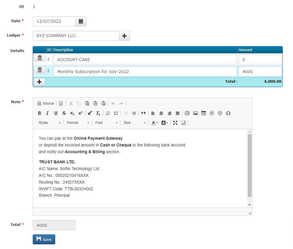 - Save payment info in cash, checks, and bank transfers